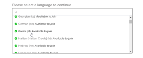- Choose one of the languages which are "available to join". We do not support languages that are not available to join.